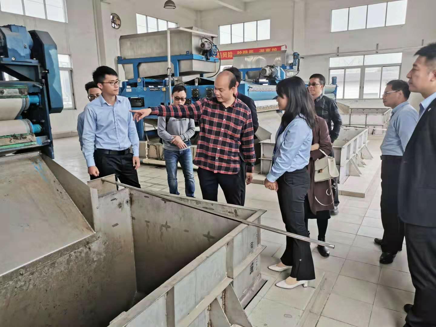 考察组参观盈峰环境北滘污水处理厂污泥压滤系统